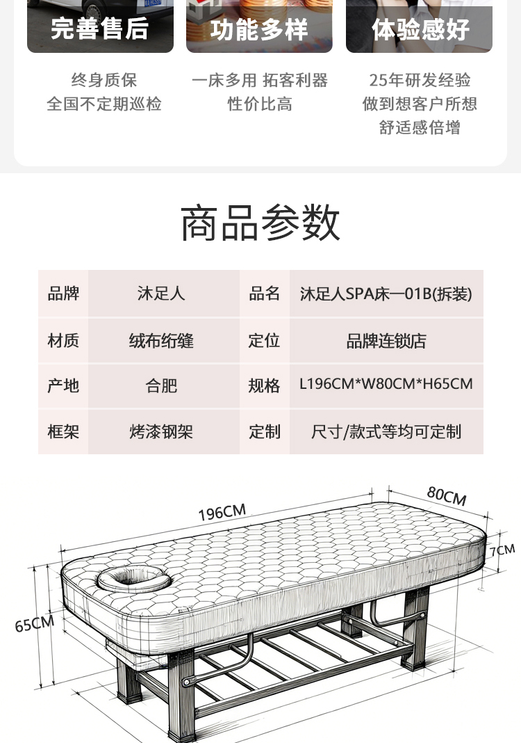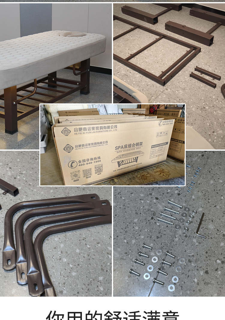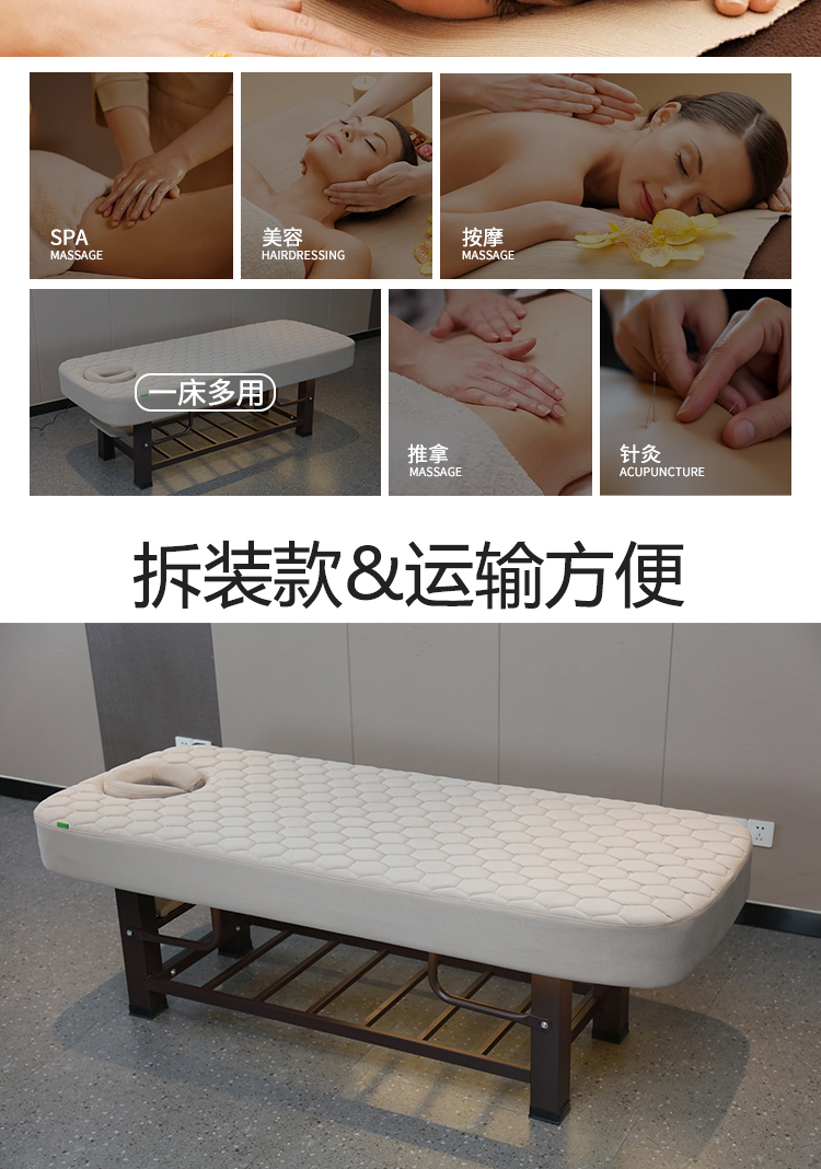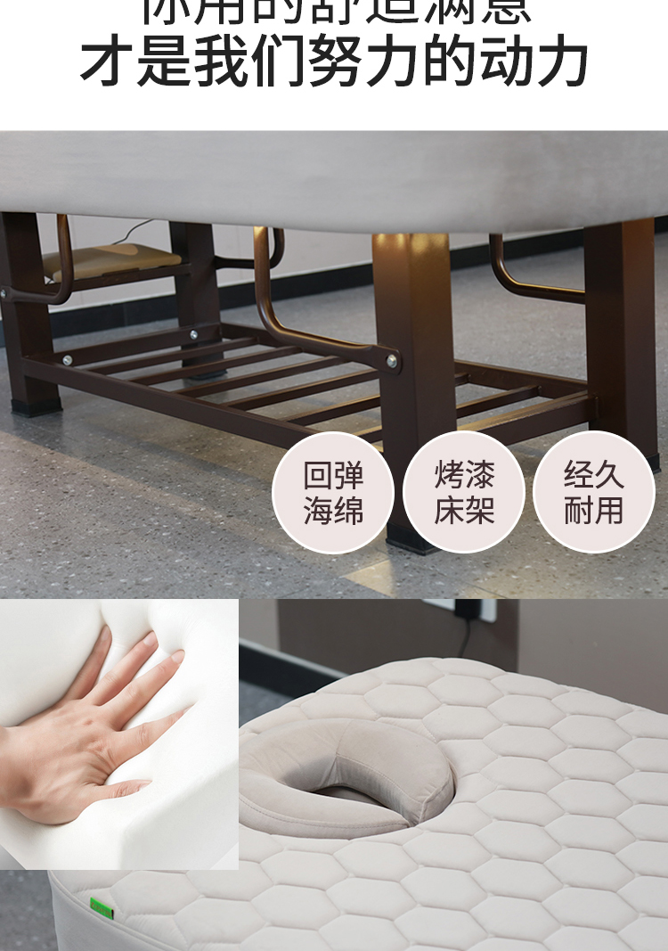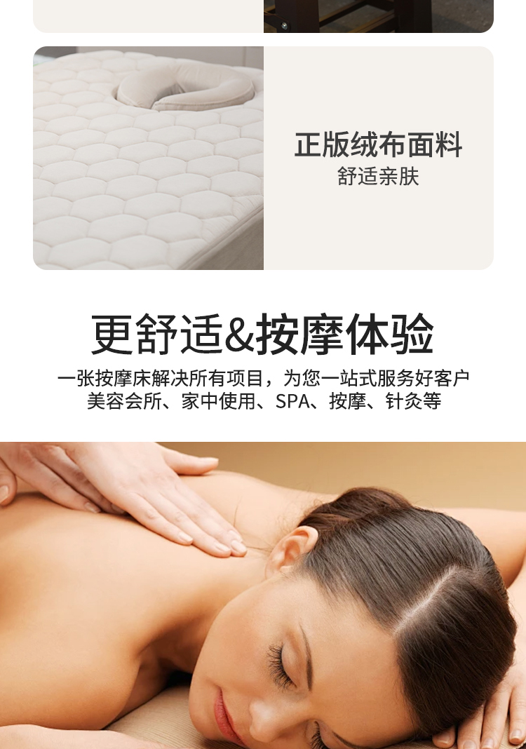 材质:绒布绗缝、烤漆钢架结构、高密海绵、实木板材