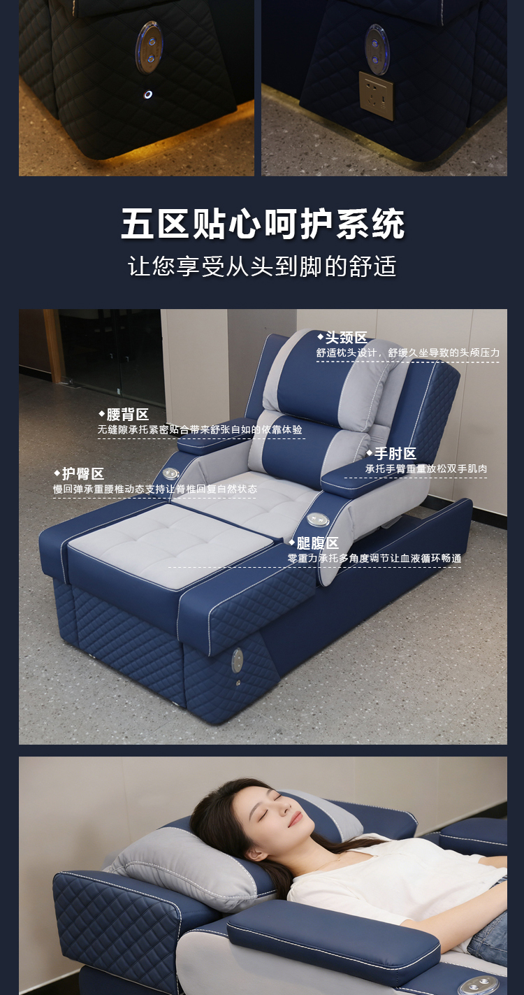 材质:磨砂科技布面料、钢架实木结构、高密度海绵