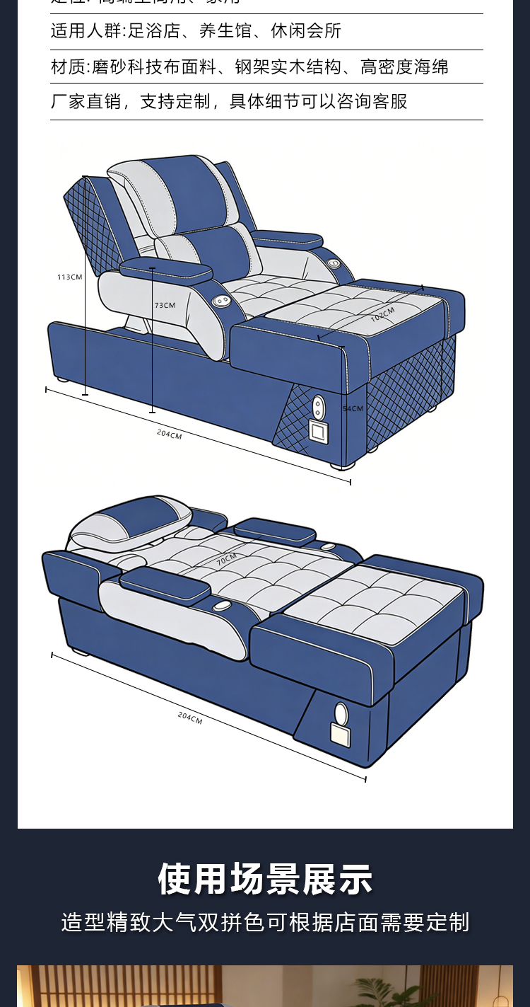 适用人群:实木架+绒布等足浴店、养生馆、休闲会所